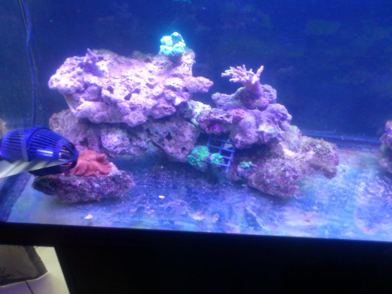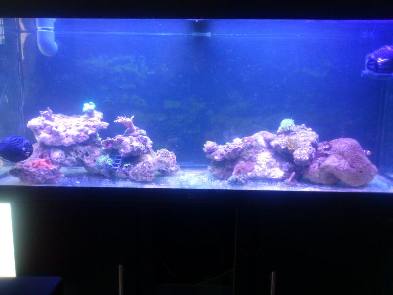 Ευχαριστώ παιδιά αλλά μετά την χθεσινή 60λιτρη αλλαγή νερού,με έτρωγαν τα χέρια μου και σήμερα πηρα την απόφαση να βουτήξω τα χέρια.Το αποτέλεσμα είναι το παρακάτω,ενώ περιμένω να επανέλθουν τα κοραλια και να ετοιμαστούν 30 λίτρα για αλλαγή,για να παρω όση λάσπη βγήκε.3 κομμάτια βράχου βγήκαν από το ενυδρείο και μπήκαν στο σαμπ(1-2 μάλλον θα μπουν στο δεξί νησάκι)...Παρατηρήσεις φυσικά είναι δεκτές.