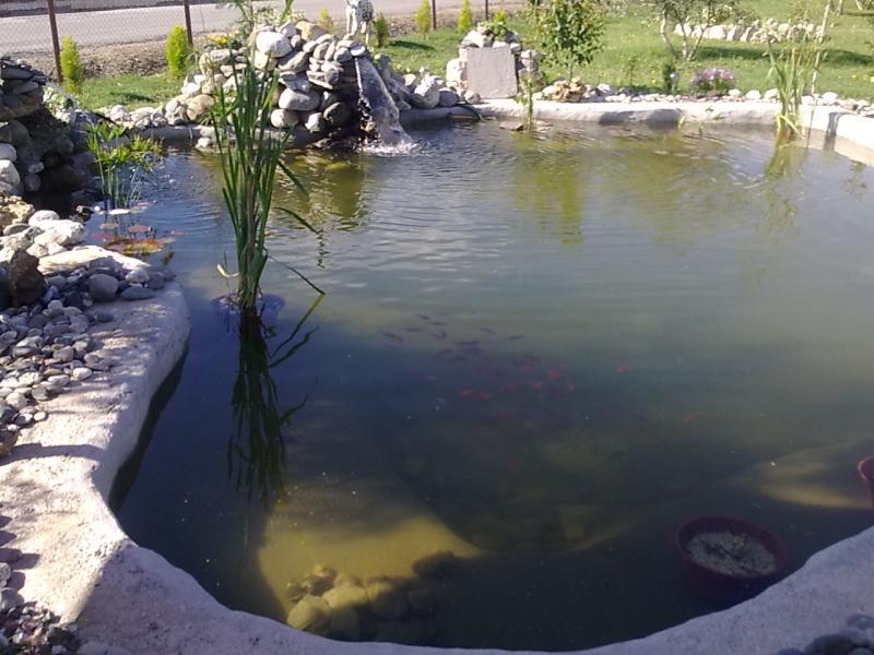 Όπως και να' χει, μετά και την επαναδραστηριοποίησή μου, θα ήθελα και εγώ να πω δυο κουβέντες, όσον αφορά τη λίμνη σου που έχεις κάνει. Πρώτον, όπως είναι τη δεδομένη στιγμή, χρειάζεσαι άμεσα φίλτρο και μάλιστα βαρβάτο. Η δε κυκλοφορία του νερού σου είναι πολύ χαμηλή. Στην περίπτωση που θέλεις να κάνεις πέρα το φίλτρο, μπορείς να το πράξεις, αλλά πρέπει συνάμα και να καλύψεις τουλάχιστον το 70-80% του νερού με φυτά. Είτε μιλάμε για νούφαρα, είτε για φυτά που θα καλύψουν τα περιτοιχώματα γύρω-γύρω. Αυτό που βλέπω όμως τώρα, είναι ότι δεν καλύπτεσαι.