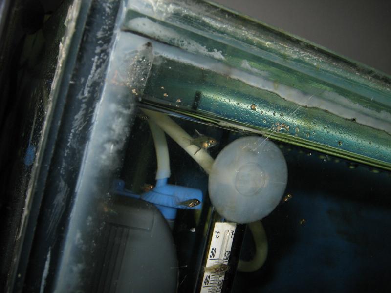 επανερχομαι λοιπον..σημερα κατεβηκα αθηνα για να δω τα ψαρακια (ταισμα-αλλαγη νερου κλπ )και οπως μπαινω στο σπιτι πρωτη μ δουλεια ηταν να δω τα νεογεννητα ψαρακια ...κοιταζω και τι να δω..πολλα περισσοτερα απο την προηγουμενη φορα ολα κοντα στους γονεις (και αλλα τοσα μεσα στο φιλτρακι) ..τα περισσοτερα φαινονται να εχουν κοκκινισμενες κοιλιες(υπαρχει λιγη τζαβα μεσα.αλλα ο βυθος ειχε απομηναρια τροφης..μαλλον τσιμπησανε κατι)ετοιμασα την αρτεμια που ειχε αφησει πριν φυγω ..(Να σημειωσω οτι ταισα πρωτα με τριμεννη τροφη και πεσανε επανω με τα χιλια ..) τωρα θα δειξει αν θα επιζησει κανενα μεχρι να ξαναερθω ..