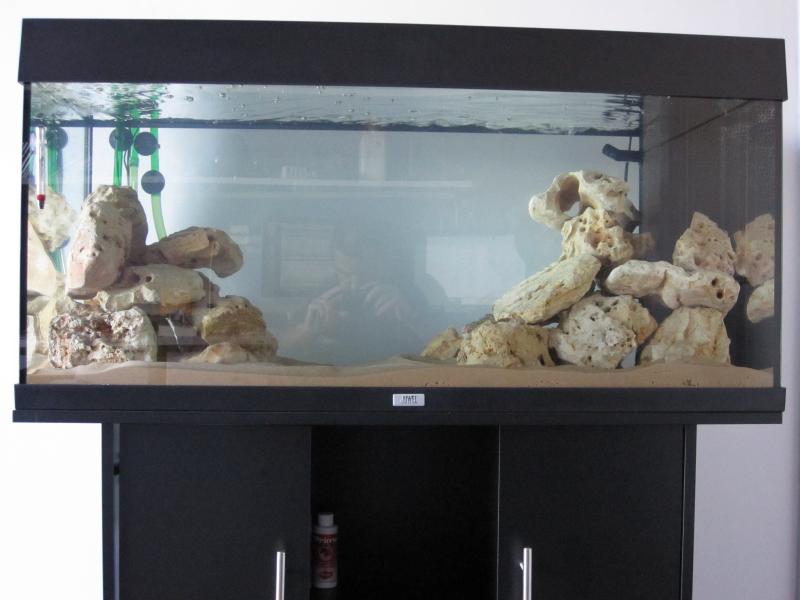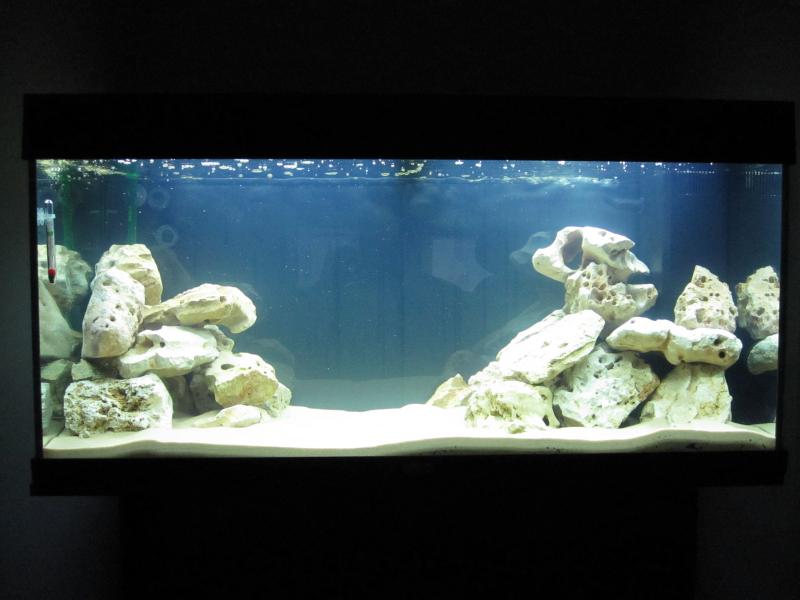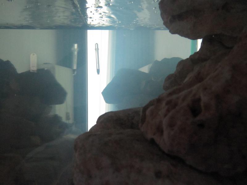 ετσι φαινεται στην φωτογραφια, καμμια πετρα δεν ειναι επιφοβη για πτωση. Λογω ταλαιπωριας, το σεταπ δεν αλλαζει αλλο, κλειδωσε στην τριτη φορα! Εβγαλα τα poly pad του εσωτερικου φιλτρο, τα ξεπλυνα και τα ξαναβαλα Μπηκε και μαυρο χαρτονι απο πισω... φωτογραφια, οταν αναψουν τα φωτα και γινει ζε τ αιμ κατασταση συνολικα, για να ανεβασει λιγο, εχω ριξει 12ml αμμωνια (10%).. βλεπουμε! ------------------------- εχμ.. πηγα σημερα για χαζι και επαθα πλακα με τα demasoni!!