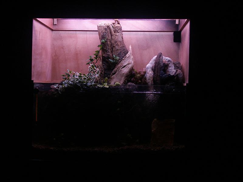 Πολύ ωραίο το paludarium σου frits Σχετικά με τη κάλυψη της ξυλοκατασκευής,αυτό που θα έκανα είναι το εξής:Θα έπαιρνα φλοιό φελλόδεντρου(πουλάνε τα διάφορα pet shop που ασχολούνται και με ερπετά.Το πουλάνε σε σχήμα κορμού κούφιου) θα τον έβαζα σε νερό να μουλιάσει για να μπορέσει να καμφθεί χωρίς να σπάσει και μετά θα τον ίσιωνα και θα του έδινα τελοσπάντων το σχήμα που ήθελα και θα τον άφηνα να στεγώσει(με βαρύδια πάνω του να τον κρανάνε στο σχήμα που του δώσαμε.Μετά,κατάλληλο κόψιμο και κόλλημα με σιλικόνη στην ξύλινη κατασκευή,να καλύωει πλήρως όλο το ξύλο.Έτσι έχουμε μια αδιάβροχη ξύλινη κατασκευή πλεον με όμορφο σχήμα που μπορούμε βάζοντας μια αντλεία να στέλνει νερό σε διάφορα σημεία της με σωληνάκι αέρος(υπάρχουν αντάπτορες για της αντλείες για να το κάνεις αυτό) ,που θα έχουμε περάσει από πριν πίσω από το φλοιό για να μην φαίνεται,να την φυτέψουμε με διάφορα επίφυτα όπως βρομελιάδες(τα μικρότερα είδη Vriessia,Tilandsia),μικρά επιφυτικά ορχεώδη(μόνο από internet αυτά,δεν βρίσκεις Ελλάδα),υδρόβια βρύα(java moss,christmas moss,Fontinalis antipyretica) αλλά και γιατί όχι και με Anubias. Για φυτά που ξεκινούν από μέσα στο νερό και βγαίνουν και έξω,τα διάφορα Hygrophila τα πάνε θαυμάσια και με μηδαμινή υγρασία αέρος. Επίσης για να ομορφύνει ακόμη περισσότερο η μετάβαση από νερό σε ξηρά,θα μπορούσες να χρησιμοποιήσεις βρύα που θα βγαίνουν και έξω και μέσα στο νερό... Αυτά νομίζω,οτι άλλο θες,ρώτα