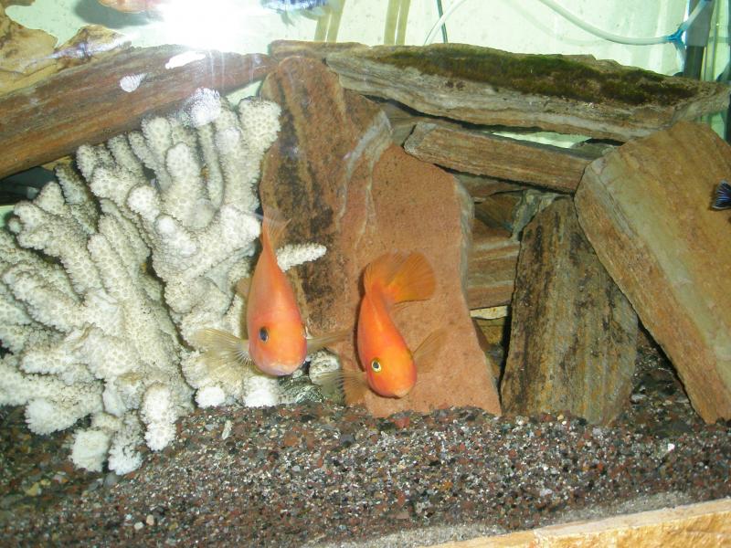 αφού είχα 2 "παπαγαλοψαρα" και τα έβαλα στο νέο ενυδρείο... με αποτέλεσμα να έχω και αμερικανικες και αφρικανικές κιχλιδες :P πήρα και ένα oscar γιατί μου άρεσε και δν ξέρω τι να κάνω τώρα... ρώτησα και μου είπαν ότι με τις τιμές που θέλουν οι αφρικανικές kixlides δν θα πεθάνουν τα "παπαγαλοψαρα" απλά δη θα περνάνε και τοσο καλά |
