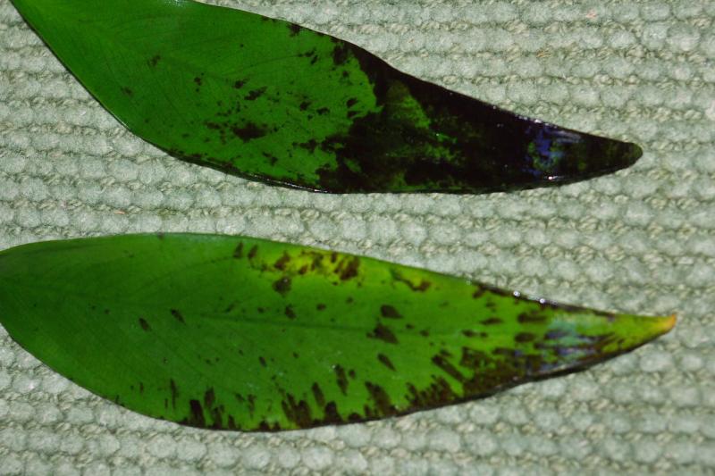 Έχω δυο ανουμπιες στις οποίες εδώ και λίγο καιρό σε κάποια φύλλα εμφανίστηκαν μαύρα στίγματα. Λέω κάποια γιατί τα περισσότερα είναι σε καλή κατάσταση. Τα φύλλα αυτά στο προηγούμενο ενυδρείο μου ήταν ακριβώς κάτω από το φωτιστικό και αρκετά ψηλά.