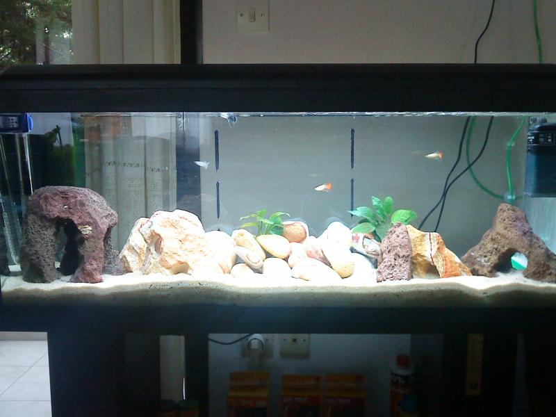 Χτες ξεκινησα να στηνω το 120αρι μου που προωριζεται για λαμπιδοχρωμιδες. Πηρα μπολικες πετρες, αλλα τωρα που τις εβαλα στο ενυδρειο μου πολυ λιγες μου φαινονται. Σας ανεβαζω φωτογραφιες να μου πειτε πως να το κανω καλυτερο αισθητικα γιατι μου φαινεται ψιλοχαλια. (Προς το παρον φιλοξενει τα γκαπυ απο το μικρο μου λογω αλλαγης setup- οσον αφορα τον εξοπλισμο του μεγαλου θα βαλω εξωτερικο φιλτρο, αλλη αεραντλια και κυκλοφορητη) Φωτογραφιες: |