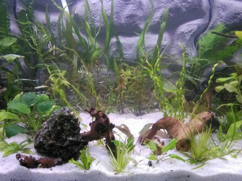 Η λευκη αμμος με φωτα κλπ ειναι λιγο "επικινδυνη" να πιανει αλγες. Επισης φαινεται αφυσικη υπο δυνατο φως. Μονο σε Blackwater μου καθεται στο ματι. Η λεπτη ιδιως ειναι και λιγο ταλαιπωρια να παραμενει καθαρη. Το γρασιδι σου ειναι ευκολο φυτο?