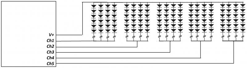 Για την ώρα δεν με απασχολούν τα χρώματα στα led. Μόνο αν είναι σωστό σαν σκέψη. Το φωτιστικό θα έχει 120 led 3βατα http://www.ebay.com/itm/151363314212...84.m1436.l2649 Θα είναι χωρισμένα σε 5 κανάλια. Κάθε κανάλι θα έχει 4 εξάδες led που η κάθε εξάδα θα είναι συνδεμένη σε σειρά και οι 4 εξάδες θα συνδέονται μεταξύ τους παράλληλα. Αυτό θα είναι το 1 από τα 5 κανάλια που θα είναι ίδια μεταξύ τους. Το κάθε κανάλι θα είναι 21,6 βολτ 2.8 αμπέρ. Τροφοδοτικό θα μπει αυτό http://www.ebay.com/itm/361038813028...84.m1436.l2649 Ο κοντρόλερ των led θα είναι αυτός http://www.ebay.com/itm/151367081867...84.m1436.l2649 Όλη η κατασκευή θα ψύχεται με τρεις ψύκτρες http://venieris.com/%CE%97%CE%9B%CE%...6/Default.aspx και τους ανάλογους ανεμιστήρες Είναι σωστά τα υλικά και το σχέδιο;
