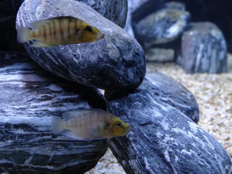 Για την άμμο θα συμφωνούσα, αλλά τυχαίνει να την είχα διαθέσιμη και δωρεάν στη συγκεκριμένη φάση και γι' αυτό την προτίμησα! Για τα ανοίγματα που λες σίγουρα χρειάζονται, απλά θα γίνουν στο μέλλον, καθώς τα ψαράκια προς το παρόν είναι έως 14cm. Επίσης σκέφτομαι να προσθέσω leleupi και Altolamprologus compressiceps. Θα έχω μεγάλο θέμα λέτε;
