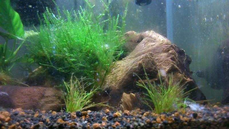 Πληροφορίες Διαστάσεις: 25x25x30 Όγκος: 19 lt Κατηγορία: Δεν γνωρίζω πως να το προσδιορίσω Φυτά: anubia barteri, cladophora aegagrophila, taxiphyllum και eleocharis. Ψάρια / ¶λλα είδη: red cherry (x4) και σαλιγκάρια μη προσδιοριζόμενα για την ώρα Διακοσμητικά υλικά: μοπάνι και ένα χαλίκι - υπόστρωμα που δε θυμάμαι την μάρκα Φόντο: - Φωτισμός: 6 βατ λεντ 8000 K Διάρκεια φωτισμού: 7 ώρες αυτήν την περίοδο Φιλτράρισμα: pat mini filter, 4 W, 400 l/h max., εγώ το έχω στην ελάχιστη ροή και "κοιτάει" προς τα πάνω στην μπροστά δεξιά γωνία. Θερμοστάτης: Heatzone aquael AQSn-10 (εδώ χρειάζομαι λίγη βοήθεια) Λίπανση: - Παροχή CO2: - Παράμετροι: pH: 7,5 Γενική σκληρότητα (GH): - Ανθρακική σκληρότητα (ΚΗ): - Αμμωνία (ΝΗ3): 0 Νιτρώδη (ΝΟ2): 0 Νιτρικά (ΝΟ3): 5-10 Αλλαγές νερού: 4 lt κάθε 7 μέρες Θερμοκρασία: θεωρητικά 25 ¶λλες πληροφορίες: τρέχει περίπου 40 ημέρες Το ζήτημα που αντιμετωπίζω με τη θερμοκρασία (δεν έχω θερμόμετρο) είναι πως δεν ξέρω εάν το συγκεκριμένο θερμαντικό σώμα είναι ανοιχτό ή όχι. Δεν έχει κάποιο σημείο που να μπορείς να το ελέγχεις και επίσης δεν έχει πινακάκι για να επιλέξεις σε ποια θερμοκρασία το θέλεις. Διάβασα στο μπουκλετάκι του να λέει πως δε χρειάζεται και δεν μπορώ να επέμβω στις ρυθμίσεις του. Προσαρμόζει τη θερμοκρασία αυτόματα στους 25. Φυσικά, η αμφιβολία μου έγκειται στο ότι επειδή εδώ και 2-3 μέρες στρώνω και ένα 25λιτρο με θερμοστάτη της aquael στους 25 βαθμούς, το νερό είναι πιο ζεστό και θυμίζει 25 βαθμούς, ενώ ο κύβος είναι κρύος. Οπότε, το ερώτημά μου είναι αν γνωρίζει κάποιος το πως να ενεργοποιήσω το θερμοστάτη του κύβου. Επίσης, παρατηρώ πως η ανούβια έχει κάποια βρώμικα σποτάκια στα φύλλα που βρίσκονται σε απευθείας έκθεση με το λεντ, πως μπορώ να το διορθώσω; Στην ουσία ο λόγος που λειτουργεί 7 ώρες το λεντ είναι για να προστατέψω ( |