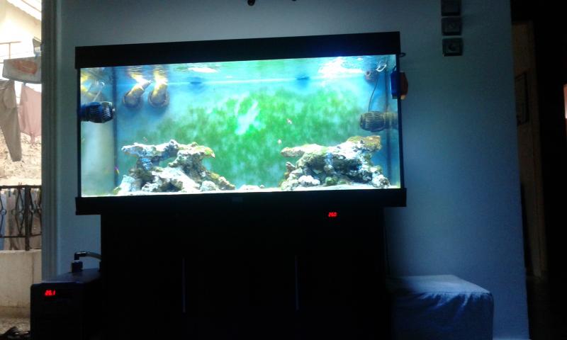 Ενα μικρο update μετα απο καποιες μπιζουλες μερες. Προστεθηκε μια euphyllia ancora (δεν μπορεσα να αντισταθω)καθως και ενα ζευγος ακομα occelaris μαζι με ενα pictichromis paccagnellae. Επισης καποια σαλιγκαρια tectus και ενα tutbo. Τα σαλιγκαρακια μπορω να πω κανουν εξαιρετικη δουλεια μεχρι τωρα. Εχουν πεσει πανω στην αλγη και καθαριζουν κομματια βραχου εως οτου τον κανουν ολολευκο. Η euphyllia το πρωτο διημερο ηταν μισικλειστη αλλα απο χθες ανοιγει κανονικα. Η αλγη στο πισω τζαμι δεν λεει να υποχωρησει με τιποτα Ρουτινες δυο φορες την εβδομαδα απο 20ml reef trace & 20ml reef plus. Αλλαγη νερου καθε εβδομαδα 20% και μετα ριχνω 30ml special blend. Μετρησεις ΝΟ3/ΝΟ4: 0 ΝΟ2: 0 ΝΟ3: 0 ΡΟ4: 0 Ca: 390 Ma: 1320 KH: 9,2 PH: 8,2 SG: 1.0255 Περημενω συμβουλες για την συνεχεια