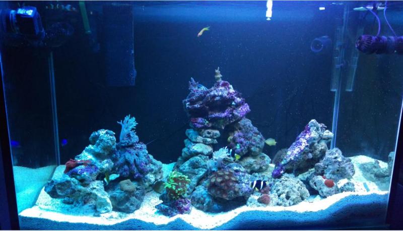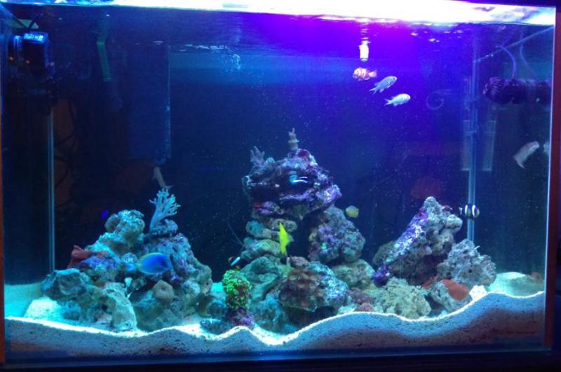 Ιχθύες(είδη και αριθμός):1 lemon damsel, 1 blue sapphire damsel, 2 clownfish + 1 blenny + 2 clarki + 1 yellow tang + 1 blue tang + 1 wrasse +