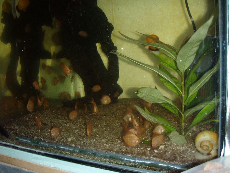 Έχω χωρίσει τα μικρά από τους ανάδοχους γονείς όπως είχα αναφέρει και σε προηγούμενο ποστ στο διπλανό δεύτερο μισό του ενυδρείου. Οι γονείς βέβαια αρχικά είχαν άλλη άποψη και κατάφεραν να περάσουν δύο φορές πίσω στα μικρά από ένα κενό που υπάρχει στο χώρισμα και στο καπάκι 2 εκατοστών, αλλά τώρα ηρέμισαν. Χθες το βράδυ οι ανάδοχοι γονείς έκαναν δικά τους καινούργια αυγά, προτιμώντας το τζάμι και όχι τον κώνο που υπήρχε διαθέσιμος. Όσο αφορά την ανάπτυξη των μικρών θεωρώ ότι είναι ικανοποιητική, αλλά τελικά υπάρχουν μερικά με δυσπλασία και άλλα που έχουν μείνει πίσω στην ανάπτυξη. Ξέρω ότι θα πρέπει να «αφαιρέσω» αυτά με την εμφανή δυσπλασία αλλά δεν το έχω αποφασίσει για τα καλά, ώστε και περισσότερος χώρος να μένει για τα υπόλοιπα και λιγότερο να βρωμίζει το νερό. Οι βιολογικοί γονείς των μικρών βρίσκονται επίσης σε άλλη γεννήστρα και ετοιμάζονται και αυτά για νέα αυγά. Ίσως όμως ξαναχρειαστεί να τα μεγαλώσουν και αυτά οι άλλοι γονείς. Θα δείξει. |