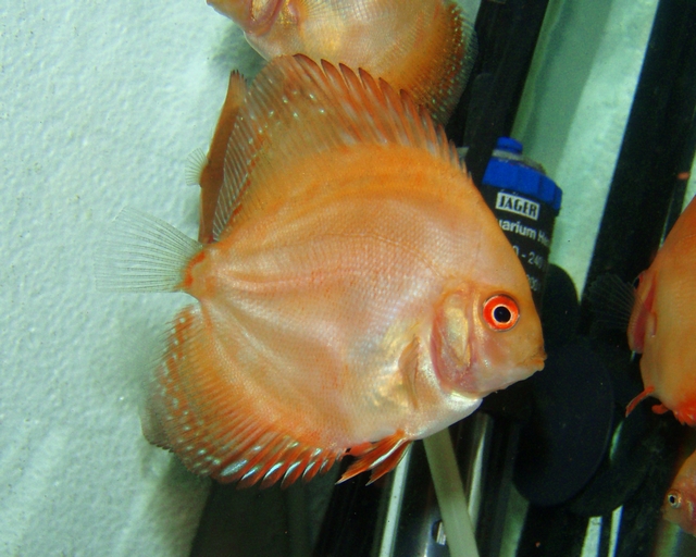 Σας παραθέτω μερικές τελευταίες φωτογραφίες από τα ψάρια όπως ήταν χθες το απόγευμα. Υπενθυμίζω ότι τα ψαράκια αυτά ήταν free swimming στις 24-08-07. Οι πρώτες φωτογραφίες είναι από μία ομάδα έξι ψαριών που έβαλα στο ενυδρείο όπου υπήρχαν αρχικά τα ζευγάρια των δίσκων πριν αρχίσουν την αναπαραγωγή. Τα μεγάλα είναι τώρα μονίμως στις γεννήστρες. Η ανάπτυξή τους δεν συγκρίνετε με αυτήν των υπολοίπων ψαριών που είναι ακόμα σε άλλο ενυδρείο συνδεδεμένο στη σειρά με τις γεννήστρες όπου γίνετε συνεχείς αλλαγή νερού. Οι υπόλοιπες φωτογραφίες καταγράφουν την διαφορά αυτή. Ενώ στα 6 ψαράκια η ανάπτυξη προχωράει με αργότερους ρυθμούς και έχουν και αρκετά μαύρα στίγματα (στις φώτογραφίες φαίνονται και μερικά από spot algea μην μπερδευτείτε, δεν είναι και τόσο πολλά) τα υπόλοιπα ψαράκια έχουν μεγαλώσει περισσότερο και είναι καθαρά χωρίς σχεδόν καθόλου στίγματα. Τα περισσότερα ψαράκια από αυτή την πρώτη γέννα έχουν ήδη μοιραστεί σε διάφορα ενυδρεία δικά μου αλλά και φίλων. Αλλά αρκετά λόγια στις φωτογραφίες τώρα: |