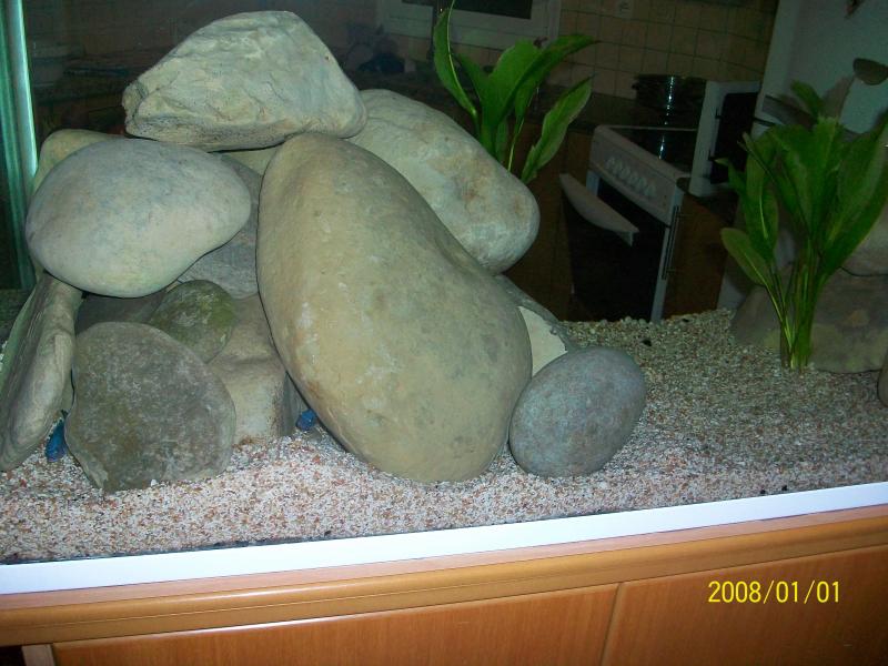 Θαναση η πετρες ειναι πολλες ,δεν φενωντε στις φωτογραφιες,χλωμο να φτασουν λιγο κατω απο τη σταθμη,οσον αφορα τα ψαρακια ειναι 2 μερες τωρα που τρωνε την τρωφη τους μπουκομενα [τα 2 που φενοντε] διλαδη οταν τρονε το στομα τους γινετε οπος οταν ειναι εγγιος.Η μετρισις ειναι καλες και γινοντε 2φορες τη βδομαδα ,αλαγες νερου καθε 15μερ 80λιτ, και ακομη αυτα τα 2ψαρ ειναι αδινατες η κιλιες τους.