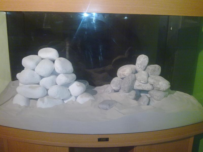 Οι μεν ειναι ασπρες και οι δε σκουροχρωμες γκρι απο ποταμι. Θα δειξει ωραιο λες με ελαφρα σκουρα αμμο; Δεν το εχω δοκιμασει ακομα, αλλα σκεφτομουν καλη ιδεα δυο τελειως διαφορετικες αποχρωσεις κρυψωνες για να διαφερουν οι κρυψωνες τους. Τι λες;