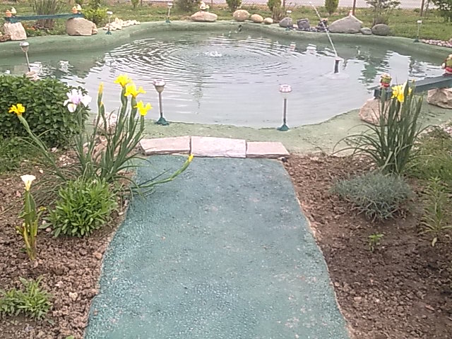 μιχαλη μου η μεγαλη λιμνη την εκανα μια δεξαμενη σιντριβανι τα βατραχια δε μου αφισαν τιποτα!!!! (να και φωτο) η δευτερη ειναι η μεγαλη αγαπη μου!!!! γιατι εχει μικρο κοστος μονο νουφαρα! ( πολλα νουφαρα ) και ενα φιλτρο με σκουπες και ενα μικρο κοματι του φιλτρου με λαβα χαλικι και φυτα! το νερο ειναι απεχτο τα ψαρια μες την τρελη χαρα! και το ποιο σημαντικο κλαδεβω, αγγιζω χορις να σκυψω