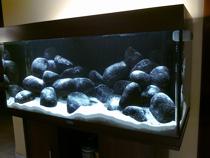 Πρώτα,θα προσθέσω ακόμη περισσότερες πέτρες,χαλόντας μεν το αισθητικό αποτέλεσμα,αλλά κάνοντας το στήσιμο πιο λειτουργικό για τα ψάρια.Πιστεύω ότι αν οι θηλυκές έχουν πιο πολλές κρυψώνες,είναι πιο άνετες και δε φοβούνται τόσο τα αρσενικά.