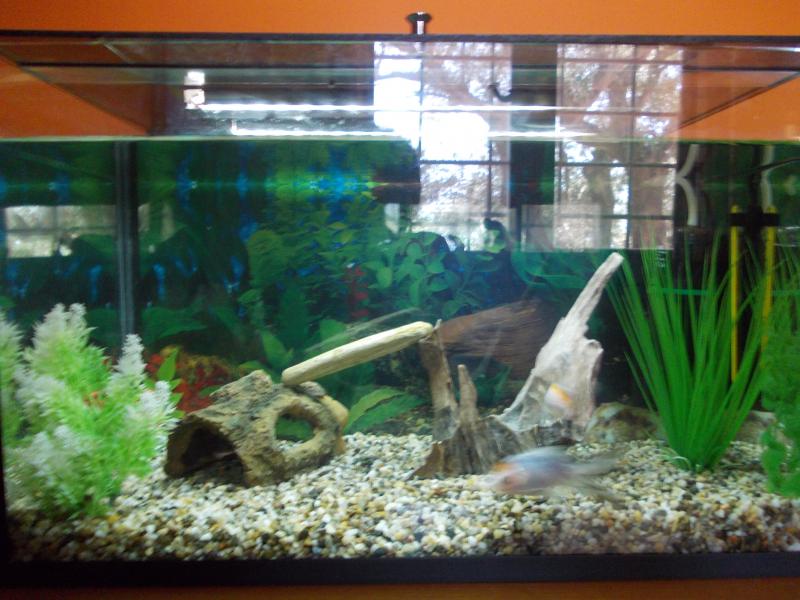 H διακοσμηση μπορει να βελτιωθει. Τι υλικο εβαλες τελικα για καπακι και τι leds? Τα ψαρια ειναι μαλλον ακαταλληλα για το ενυδρειο (shubunkin δεν ειναι? 25-40 εκ τελικο μεγεθος, ειναι για λιμνες)