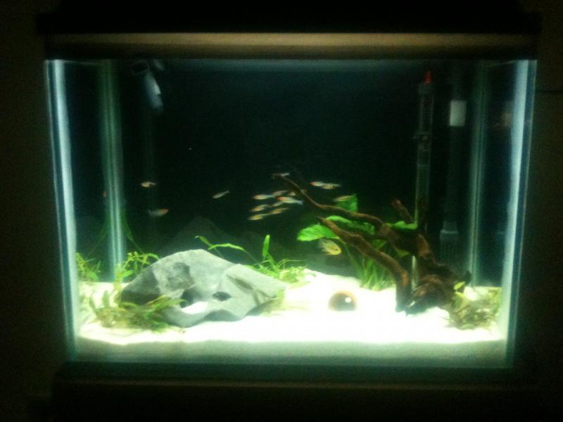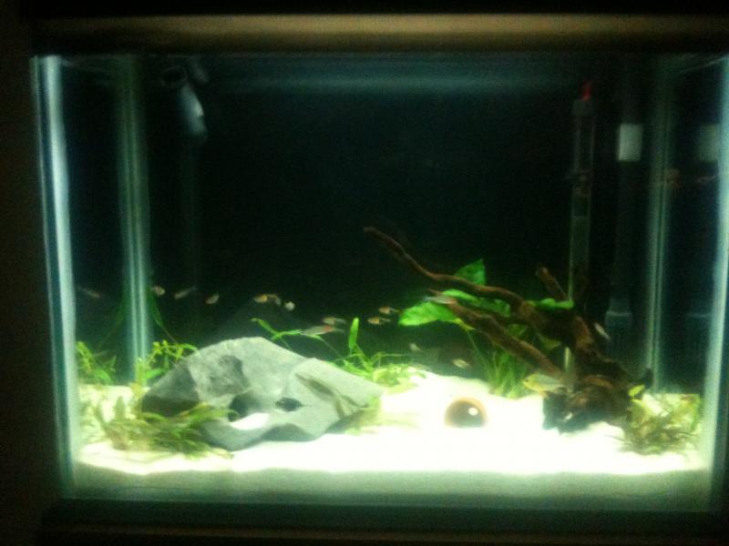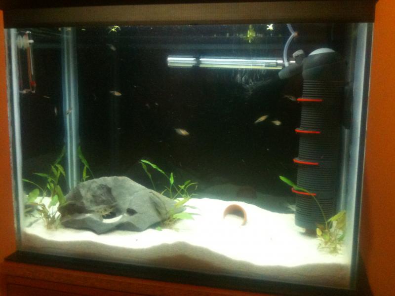 ενα πρωτο στησιμο σε αναμονη του εξωτερικου φιλτρου , περιμενω μια ριζα να κατσει που θα την βαλω εκει που ειναι το φιλτρο τωρα και αρκετα φυτα ακομα