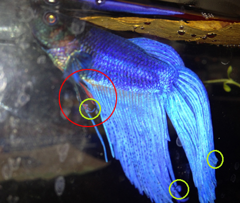 Το δυστυχές είναι ότι μάλλον έχει κάτι σε fin rot αλλά δεν είμαι σίγουρη, γιατί δεν έχει φαγωμένα πτερύγια ή ουρά. Τα μοναδικά σημάδια που μπορώ να δω είναι ότι τα πτερύγια πλεύσης - τα πλαϊνα από τα βράγχια του - φαίντονται σαν να έχουν κενά. Δεν μπορώ να δω καθαρά αν απλά είναι διαφανή με μπλε νευρώσεις δυστυχώς. Επίσης στο ventral fin - δεν ξέρω την ελληνική ονομασία - έχουν σχηματιστεί γραμμές πορφυρού χρώματος, τις οποίες δεν μπορώ να θυμηθώ αν είχε όταν τον πήρα - κλίνω προς το όχι. Γνώμες; Τελευταία επεξεργασία από το χρήστη sof_v : 03-04-13 στις 15:34 Αιτία: Automerged Doublepost |