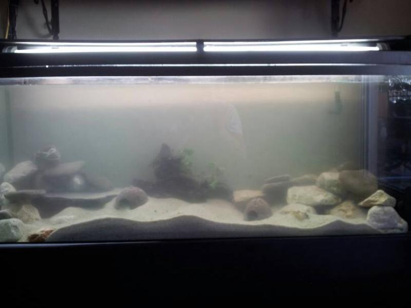 Γυριζουμε παλι στην γνωστή Αφρική. Το παλιό ενυδρείο αντικαταστάθηκε με dyi 140x40x55. To εσωτερικό sump αφαιρέθηκε και την θέση του πήρε ενα eheim 2217. Μπεζ χαλασιακή άμμος με πέτρες λάβας, Ανούμπιες και βαλισνέριες συμπληρώνουν την εικόνα ( υπάρχει και μια Hygrophila polysperma "sunset" αλλά μάλλον θα γίνει τροφή ) και για φόντο μπλέ αφίσα. Λάμπες color της tripica ( ροζ ) και μια daylight της jbl. Δεν έχουν μπει τα ψαράκια μέσα ακόμα αλλά θα μπουν 2 χαρέμια ( Pseudotropheus Sp. Acei Και Labidochromis Caeruleus ). Φωτογραφίες : https://www.dropbox.com/sc/c6fbkc1kx42bcrl/rPp0jiKarA https://www.dropbox.com/sc/mg3cp8bpaie5q48/wANkHmbCl2 |