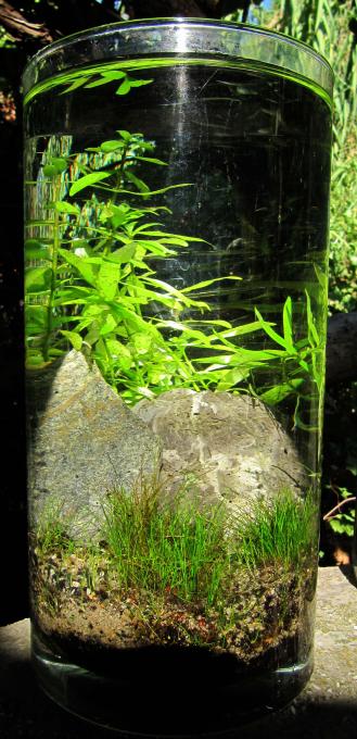 Διάρκεια φωτισμού: 1 ώρα ήλιος και το υπόλοιπο περιβάλλοντος Φιλτράρισμα: κανένα Θερμοστάτης: κανένας Λίπανση: υπόστρωμα από φυτόχωμα και αργότερα στικς Παροχή CO2: οχι Παράμετροι: pH: 7,4 Γενική σκληρότητα (GH): 10 Ανθρακική σκληρότητα (ΚΗ): 6-7 Αμμωνία (ΝΗ3):άγνωστο Νιτρώδη (ΝΟ2): άγνωστο Νιτρικά (ΝΟ3): άγνωστο Αλλαγές νερού: το μισό κάθε 3 μέρες Θερμοκρασία: περιβάλλοντος ¶λλες πληροφορίες δυο βάζα στήθηκαν μόνο για λόγους décor Για φυτά έβαλα hygrophila polysperma, eleocharis acicularis, staurogyne, και μαζί μπήκε ελάχιστη riccia fluitans Διακοσμητικά έβαλα δυο πέτρες στο καθένα Κάτοικοι είναι μερικοί λαθρεπιβάτες σαλιγκάρια Για αυτό και μόνο θα μπορούσες να τα πεις ενυδρείο με ασπόνδυλα Και είναι έτσι 25 μέρες περίπου |