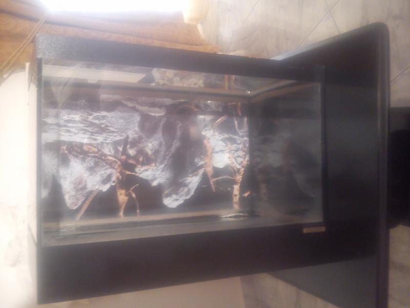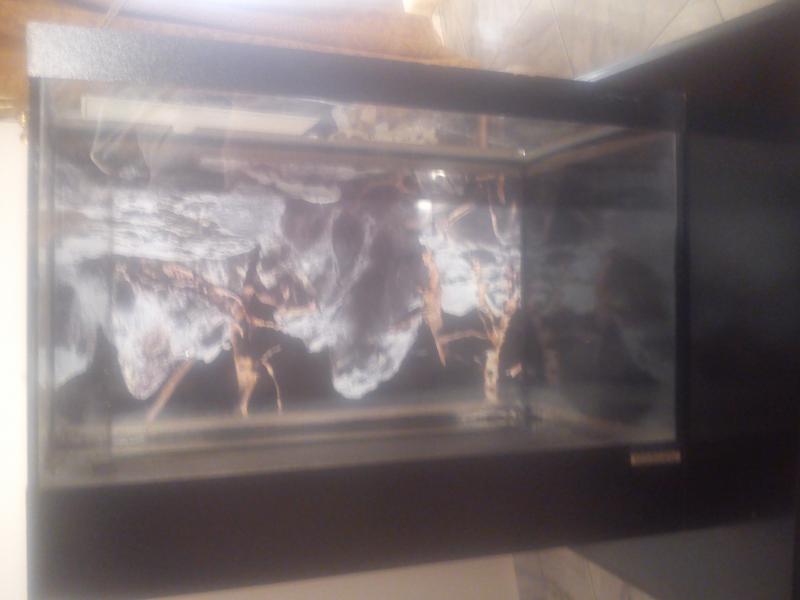 δεν εχει καπακι...το μισο ειναι καλυμενο με ξυλο κατα μηκος του ενυδρειου και απο κατω εχει μια γυαλινη θυκη(προφανως για λαμπα..) ------------------------- Παράθεση:
