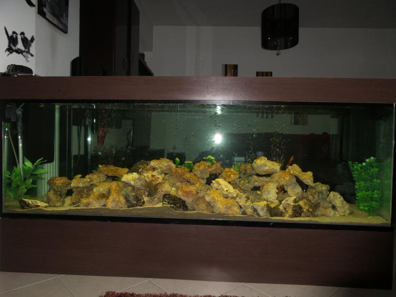 Γενικές Πληροφορίες Διαστάσεις Ενυδρείου :200x50x70 Συνολικά Λίτρα:740 Οργανισμοί Φυτά: προς αναζητηση βαλισνεριες και ανουμπιες Ψάρια: labidochromis caeruleus, pseudotropheus demasoni Διακοσμητικά υλικά Πέτρες: διαφορες απο τη φυση Υπόστρωμα: χαλαζιακη αμμος Φωτισμός γυρω στα 2 μετρα λαιντοταινια rgb η οποια αναβει και σβηνει λιγο πριν τον κυριο φωτισμο αυξομιονωντας την ενταση ωστε οσο τα καταφερνω να αναπαριστω ενα συστημα ανατολης-δυσης Παράμετροι pH: 8 Γενική σκληρότητα (GH):16 Ανθρακική σκληρότητα (ΚΗ):11 Αμμωνία (ΝΗ3):0 Νιτρώδη (ΝΟ2):0 Νιτρικά (ΝΟ3):15 Μέση Θερμοκρασία (°C) 26 Συντήρηση Αλλαγές νερού:25-30% καθε 15 μερες |