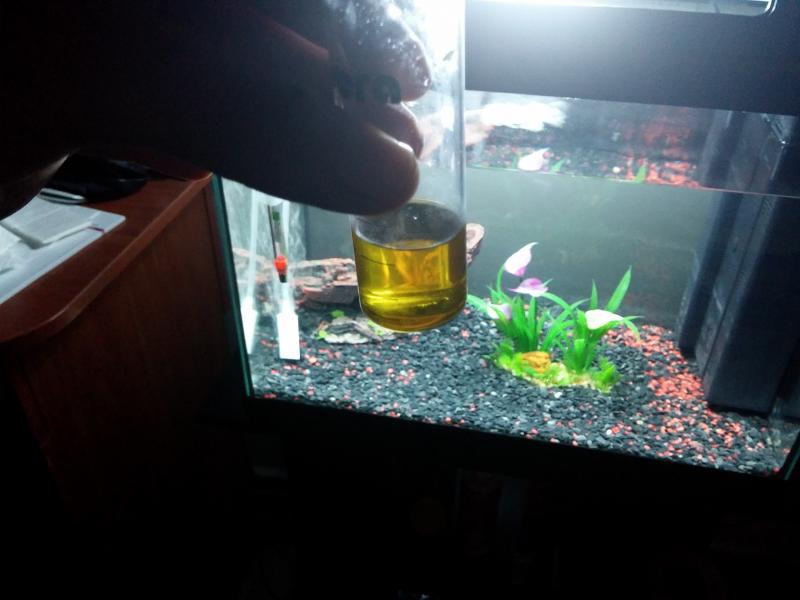 Αφου εστρωσα χαλικι (πρωτα το ξεπλυνα) γεμισα με νερο το ενυδρειο (βρυσης) ανοιξα τον εξοπλισμο (Φιλτρο και Θερμοστατη) και το νερο ηταν καπου στους 24-25 βαθμους!