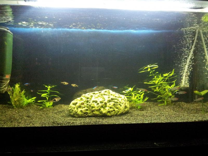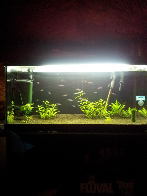 ξεκίνησα πριν ένα χρόνο και κάτι μήνες έχοντας αγοράσει ένα 100l χωρίς να έχω ιδέα που πάω και τι με περίμενε.χάνοντας καθημερινά ψαρια άρχισα να γκουγκλαρω και έπεσα πάνω σας.μου δημιουργούνται συνεχεια ερωτήματα και θα σας σπάω τα νεύρα μονο σε αυτό το θέμα. Πληροφορίες Διαστάσεις:70M*45Π*53Υ Όγκος: 166 μικτά Κατηγορία: Φυτά: microsorum pteropus windelev, hygrophila corymbosa, pogostemon helferi, Cardamine lyrata, Vallisneria Gigantea, Vallisneria nana, flame moss, Weeping moss, Aponogeton madagascariensis, Utricularia graminifolia κ.α Ψάρια / ¶λλα είδη:12 Hemigrammus bleheri 13 Paracheirodon axelrodi 3 amano 2 σκαλαρια ![]() ![]() ![]() Διακοσμητικά υλικά:Flourite Black, πέτρες Φόντο: Μαυρο πλαστικο Φωτισμός:96w (2x grolux 2x day light) Διάρκεια φωτισμού: 13:00-22:00 1 gro 1 day 14:00-21:00 1 gro 1 day Φιλτράρισμα: flval 205 eheim 2215 Θερμοστάτης: 150w Ψύξη: elitech stc 1000 2χ konig fan 120mm Λίπανση: Flourish, Flourish Trace, Flourish Iron, Flourish Potassium, Flourish Tabs Παροχή CO2: μπουκάλα 2κ Παράμετροι: pH:6,9 Γενική σκληρότητα (GH): Ανθρακική σκληρότητα (ΚΗ):9 Αμμωνία (ΝΗ3):0 Νιτρώδη (ΝΟ2):0 Νιτρικά (ΝΟ3):40 Αλλαγές νερού: 50% κάθε κυριακη (40 α/ο 60% βρυσης) Θερμοκρασία: 24 τώρα θα ακολουθήσει φωτογραφικο υλικό από την έναρξη του χόμπυ μέχρι και τώρα. |