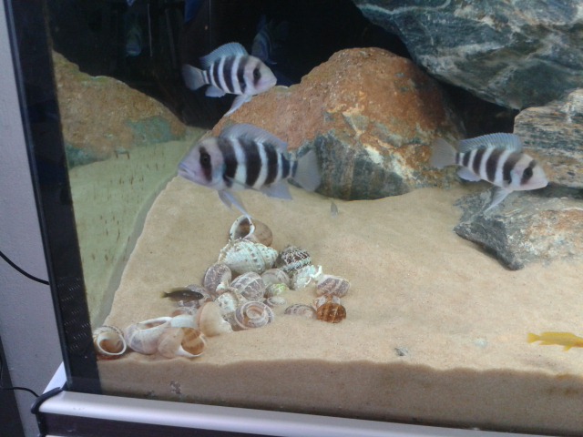 Ένα update παιδιά. Τελικά το έκανα τανγκανίκα το ενυδρείο. Εχω βάλει 10 φρόντόζες burundi, 5 λελεούπι, 5 Altolamprologus compressiceps Chaitika (orange fin) Αφαίρεσα πέτρες στο aquascaping και μου φένεται πιο λειτουργικό τώρα για τα ψάρια. Οι φροντόζες έχουν γίνει διπλάσιες απο τότε που τιw πήρα και οι κάλβοι μου δώσαν την πρώτη γέννα. Εδώ και δύο βδομάδες πρόσθεσα και μια ομάδα μούλτι απο τις τρείς που έχω πειραματικά για να δω πωσ θα τα πάνε, μιας και οι φροντόζες είναι μικρές και ίσως τα συνηθίσουν. Μέχρι τώρα δεν έχω κανένα πρόβλημα και κανένας δεν ενοχλεί κανένα. Και αν συνεχίσουν να τα πηγένουν καλά σκέφτομαι να βάλω όλα τα μούλτι μου μέσα. Πήρα καινούριο ενυδρείο 1400 λιτρα και σκέφτομαι να μεταφέρω εκεί τα ψάρια μόλις τελειώσω με την ανακατασκευή Σας βάζω και μερικές φωτό να δείτε και το καινούριο aquascaping που δεν έχει τόσο σπηλιές όσο περάσματα μικρά και μεγάλα.
