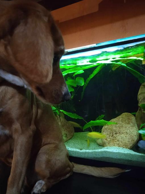 Νάτη η Τζέλα όπως χάζευε χθες τα ψαράκια μας