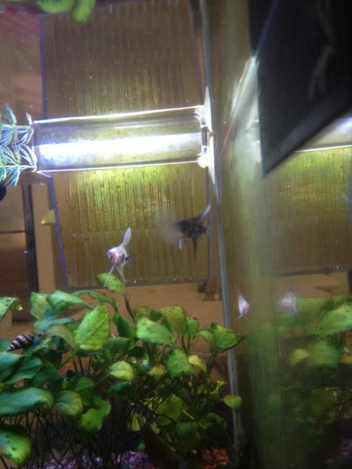 Πριν από ενάμιση μήνα πήρα γέννα από pterophyllum scalare peruvian και αυτή τη στιγμή μεγαλώνω πάνω από 90 μικρά....έχει 5-6 μέρες που μοιάζουν με αγγελόψαρα και πάμε φουλ τάισμα-αλλαγή και μπόι.......................