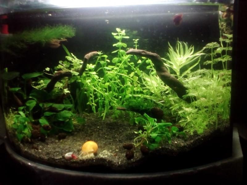ανταλλαξα τις ριζες και μετεφερα πανω αριστερα την flame moss (πανω σε μια ριζα) να εχει αμεσα φωτισμο και ηδη εχουν αρχισει να μεγαλωνουν οι τριχες της υπολογιζω απο βδομαδα να μπουν οι γαριδες , καθως και μερικα clithon corona. το ενα apple παραμεγαλωσε για το ενυδρειο και αρχισε να ξηλωνει τα φυτα
