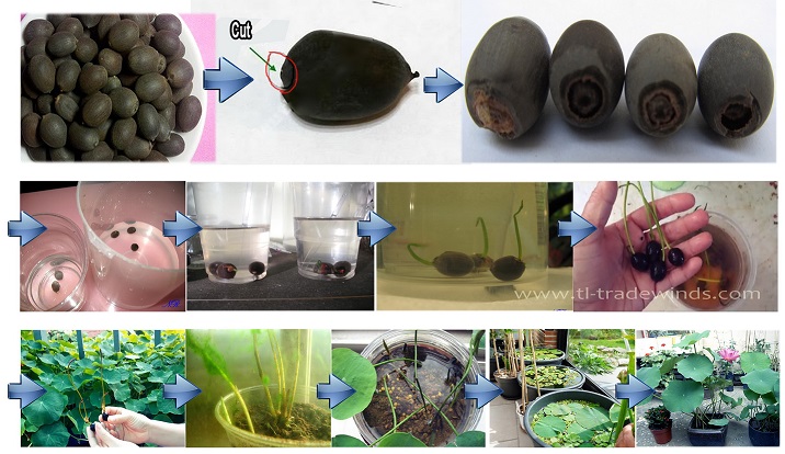 Κάτσε τώρα να δούμε : 1 . Πρέπει να τους κόψεις (τους σπόρους ) με ένα μαχαιράκι 2. μετά τα βάζεις στο νερό 3. Φουσκώνουν και πετάνε φύτρα και μετά απο λίγο (2η εβδομαδα) φύλλα 4. Τότε φυτεύεις σε άμμο Οι Λωτοί αυτοί γράφουν βάθος νερού ?? Γιατι οι δικοί μου είναι για 10 εκ. και τους έχω σε λεκάνες