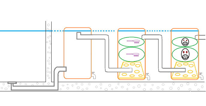 Δηλαδή εννοείς το πρώτο βαρέλι να μην έχει τίποτα μέσα? Εγώ το είχα σκεφτεί να βάλω ένα κουβά κάτω, τα υλικά από πάνω ωστε να μένει η βρωμιά κατω. Να ακόμα ένα παραπαίων σχέδιο μου. Το κίτρινο είναι ο κουβάς με τρύπες και το πράσινο τσουβάλια με υλικό. Εξήγησε το μου αν εννοείς το πρώτο βαρέλι άδειο γιατί τα αγγλικά μου χωράνε βελτίωση