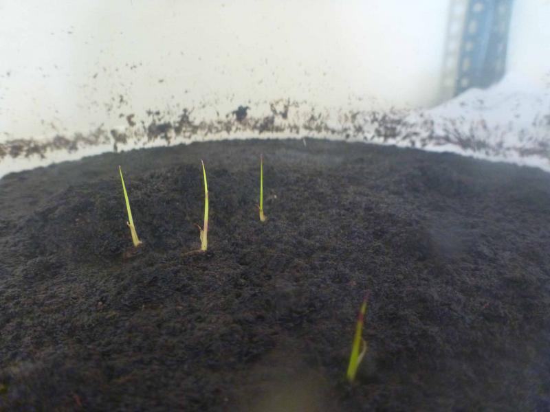η φωτο ειναι σημερινη. χτες ειδα μονο ενα βλασταρακι(το δεξι),σημερα βλεπω και δευτερο απο πισω. αυτα τα εχω σε γυαλα μεσα στο δωματιο,σε χωμα ανακατεμενο με τυρφη και αρκετο νερο. |