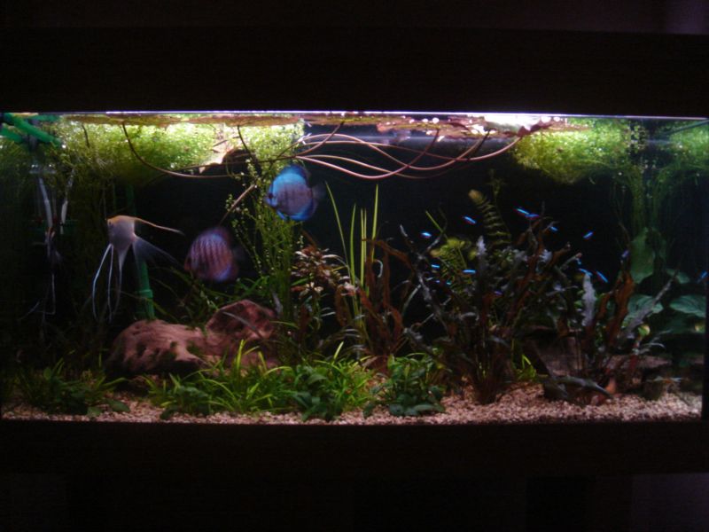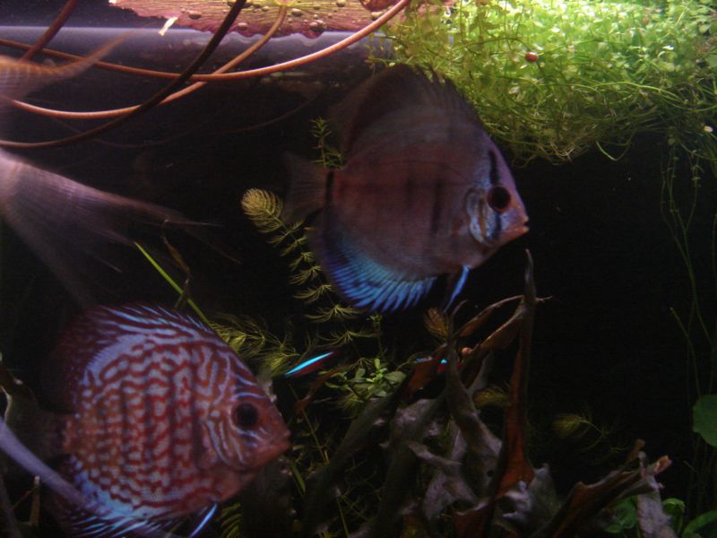 Τα σκαλάρια και τα rams είναι πολλά ! Κατά την γνώμη μου πρέπει να αποχωριστείς κάτι απ'όλα (πχ κράτα 1ζευγ από τα δύο είδη). Δίσκους μην βάλεις Α)αν δεν αδειάσει το ενυδρείο (από κιχλίδες) (leonm) Β) και όπως λέει το Xotikouli είναι λίγα τα λίτρα (αν μείνουν εκεί) Τα μουστάκια από το cory στην photo 4 .... ; Τα corydoras χρειάζονται λεπτόκοκο χαλίκι για να μην τραυματίζονται. Αυτά. Αν και σου είπαν τα ίδια πράγματα πιο πριν, στα ξαναλέω γιατί λες ότι περιμένεις το ζευγαράκι δίσκων από το μαγαζί.