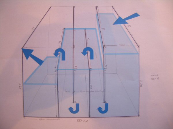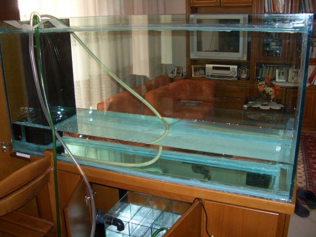 Λοιπον φιλε μου αν και πρωταρης στον χωρο,θα επιχειρησω να σου απαντησω μιας και πριν λιγους μηνες εφτιαξα μονος μου ενα ενυδρειο ακριβως οσο οι διαστασεις σου.Λοιπον ειναι παρα πολυ απλο και οικονομικοτερο απο το ετοιμο.Η βαση εγινε απο κοιλοδοκο 4αρα και ντυθηκε απο mdf.Απο κατω υπαρχει ανεση χωρου για το σαμπ,το οποιο ουσιαστικα ειναι ενα εξωτερικο φιλτρο πολλαπλων λειτουργιων που το φτιαχνουμαι μονοι μας και εχει διαφορα διαμερισματα.(Φωτο 1).Μεσα εφτιαξα και ενα πυργο υπερχειλησης με αποχετευση στον πατο του για να αδειαζει στο σαμπ με ασφαλεια.Η αντλια 1600 λιτ/ωρα για μενα ειναι μικρη αν η σταθμη σου ειναι τοσο ψιλα.Την πατησα και ο ιδιος .2500αρα τουλαχιστο πιστευω εγω.Οσο για τα τζαμια καλυτερα να πας οχι σε τζαμα αλλα σε εργοστασιο επεξεργασιας υαλοπινακων.Τα δικα μου για ενυδρειο 1.50Χ50Χ70 τα αγορασα 75 Ευρω!!!!.Ψαξτο λιγο.