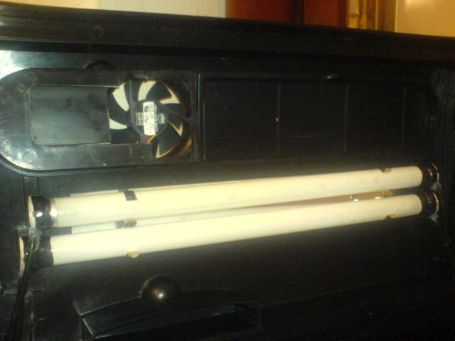 λοιπον εγκατεστησα στο 100 αρι μου 2 ανεμηστηρακια ενα 6cm και ενα 4cm<μεγαλυτερα δεν χωρανε> και δουλευουν στα 12v απ το πρωι!εχω 2 λαμπες 18w των οποιων το ballast εχει βγει εξω!παρτε και φοτο απ τα ανεμηστηρακια τα οποια χτυπανε το νερο!το προβλημα μου ειναι οτι απ το πρωι δεν εχουν ριξει την θερμοκρασια πανω απο 0,5 αντε το πολυ 1c αυτη τη στιγμη εχω θερμκρασια δωματιου 26,5 και θερμοκρασια ενυδρειου 26 ενω το πρωι ειχα και 28 δωματιο με 27,5 στο τανκ κανω κατι λαθος?λετε να βαλω και αλλο ενα ανεμηστηρακι να χτυπαει το νερο η ενα να λειτουργει ως εξαερισμου?ο θερμοστατης εχει βγει απ την πριζα για να τσεκαρω με σιγουρια!τα ανεμηστηρακι προς το παρον τα αναβω εγω κανα 2 ωρες πριν τις λαμπες μεχρι να παρω εναν elliwel!δειχνω και πως εχω βιδωσει το balast λετε να βαλω κατι απο πανω να μην ειναι ετσι χυμα?