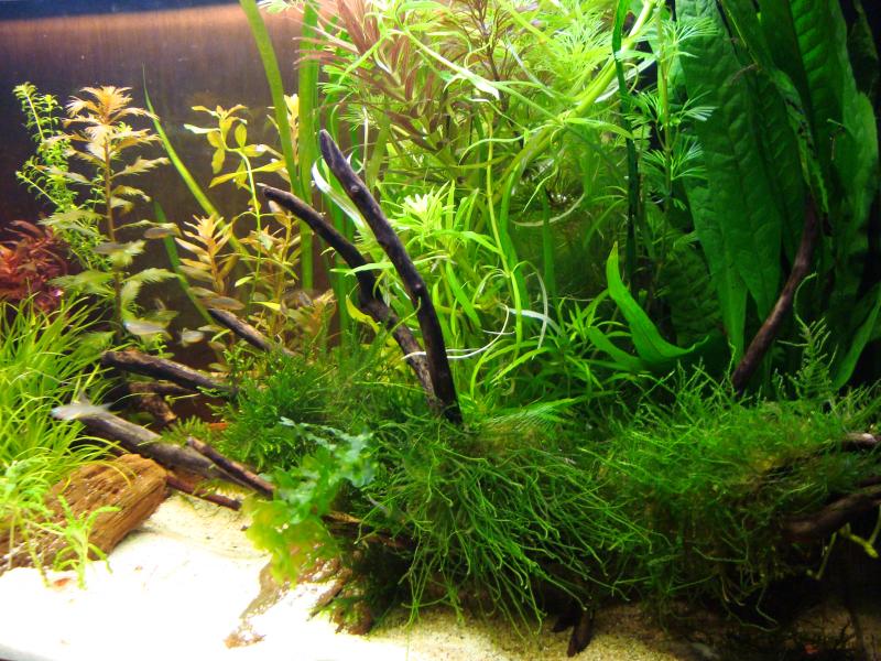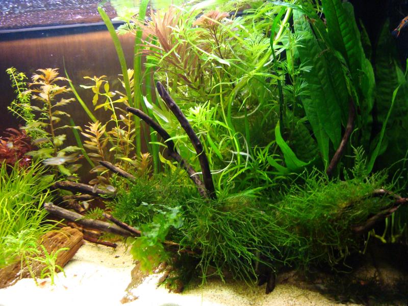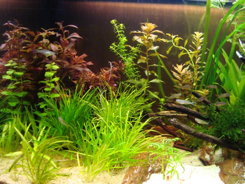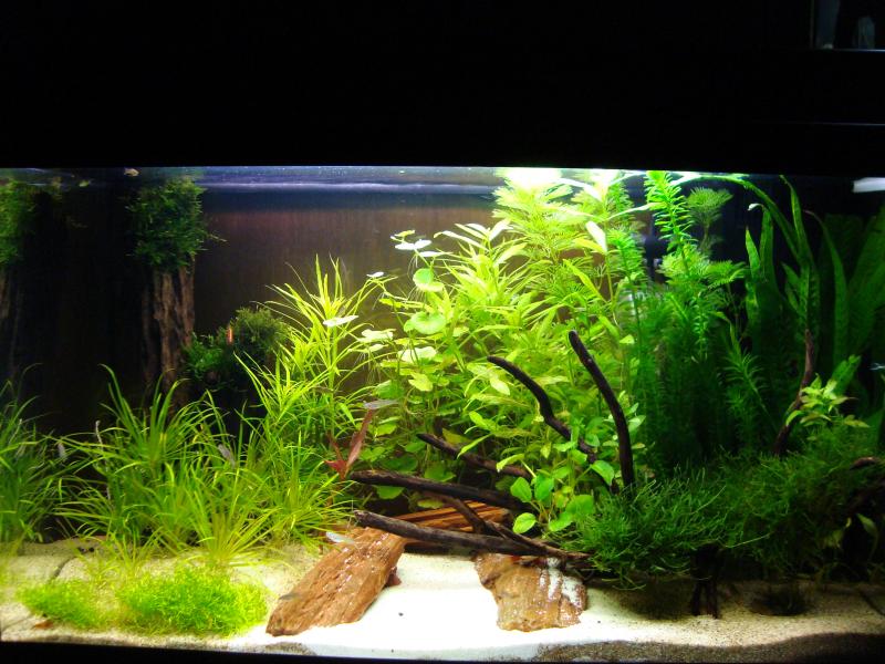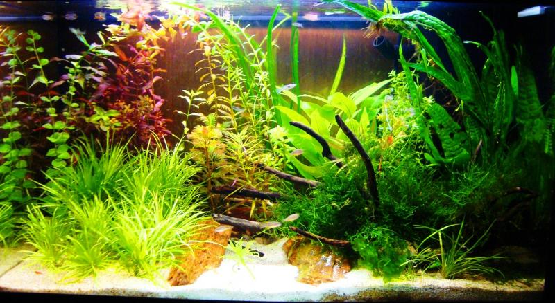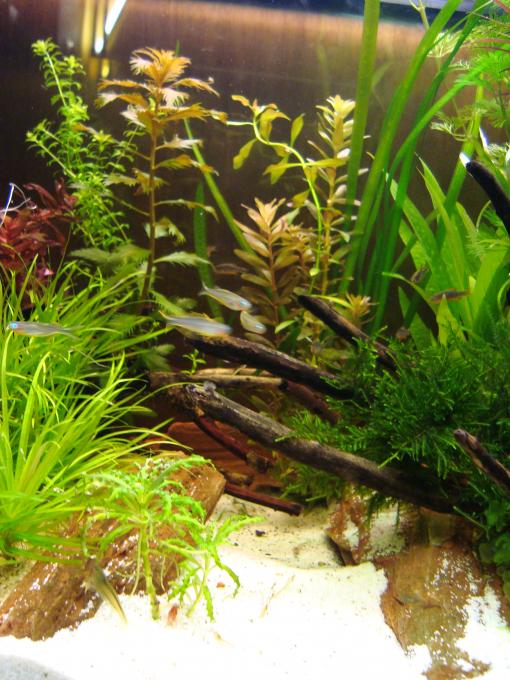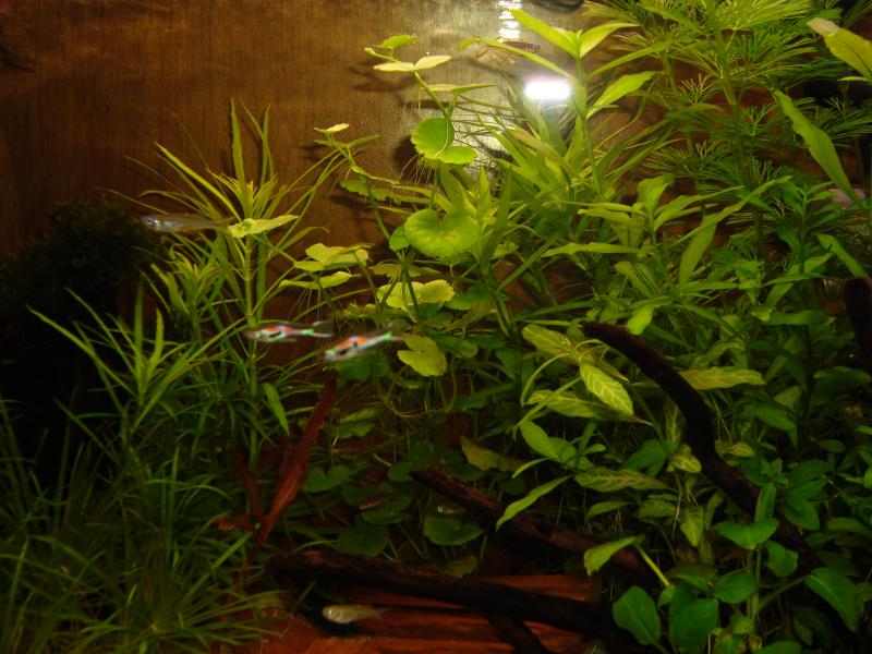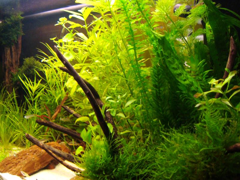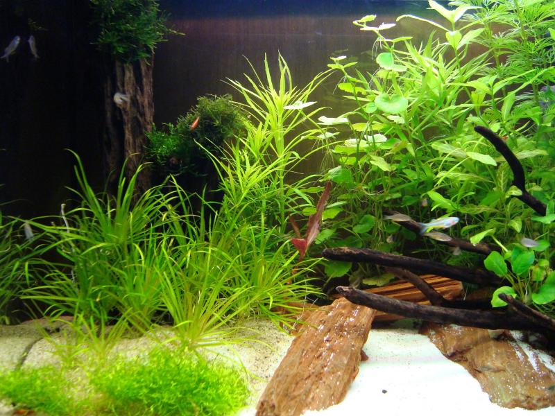 Εγώ θα έλεγα καθόλου φυτά και γαρίδες μόνο ξύλα, ξερά φύλλα στον πάτο blackwater και ένα ζευγάρι ramirezi... Έχω την εντύπωση ότι τα λίτρα φτάνουν... ή κάνω λάθος?