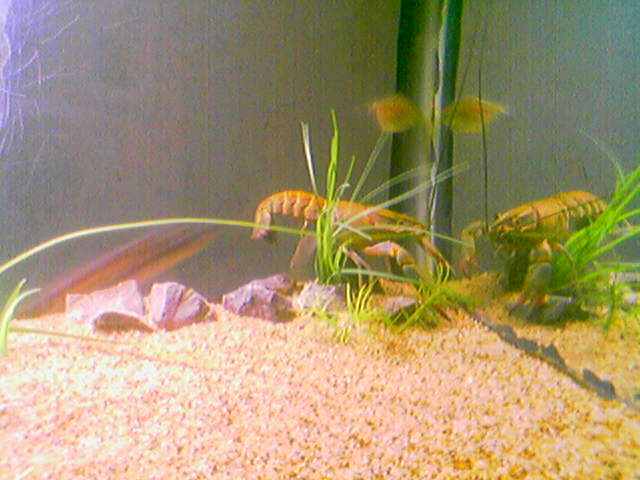 Εκει εμαθα οτι χρειαζεται καπακι το ενυδρειο ... αφου καθε φορα που γυρνουσα απο τη δουλεια τον εβρισκα να κοβει βολτες στο αλλο δωματιο (κυριολεκτηκα φοβομουν μη τον πατησω!!) Οταν ειχε την πρωτη εκδυση (δε το ηξερα οτι το κανει αυτο ...) νομιζα πως ειχε ψοφησει αφου ηταν το πουκαμισο του αδειο στο ενυδρειο (το ειχε σκασει ο ατιμος Βεβαια κενο το ενυδρειο χωρις κρυψωνες! ![]() Το καημενο το "δολλαριο" που φαινεται αχνα στη 2η φωτο ... το επιασε στον "υπνο" και το τσακισε!! Τελικα εμαθα οτι αν βαλεις ψαρια με αστακο .... θα μεινει μονος του ο αστακος!!!