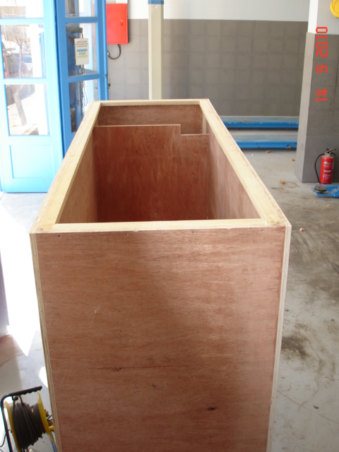 2) θα περαστει πολυεστερας και μετα μονωτικο υλικο για ποσιμο νερο 3) κοντρες δεν θα μπουν, οχι, λογο πολυεστερα. 4) στην εμπρος μερια θα μπει παλι ενα κοντρα πλακε οπως στην πλατη και μετα με την σεγα θα κοπει η οθονη...