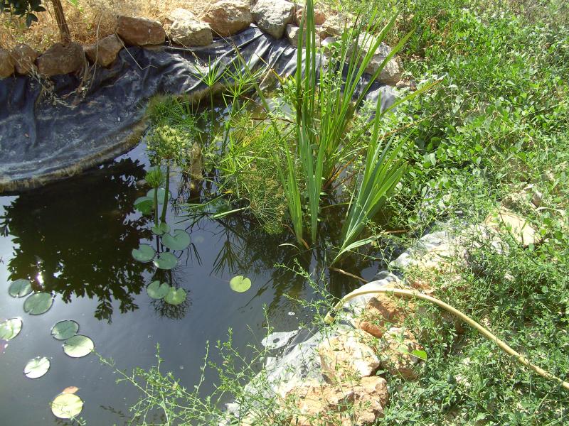 Ενα μήνα μετά, η στάθμη λίγο κατεβασμένη, αλλά τα φυτά υγιή και τα ψαράκια πολυάριθμα και υπερδραστήρια...εδω ξεσκίζουν ένα έντομο που είχε την ατυχία να προσγειωθεί στη λίμνη..gambusia piranhis
