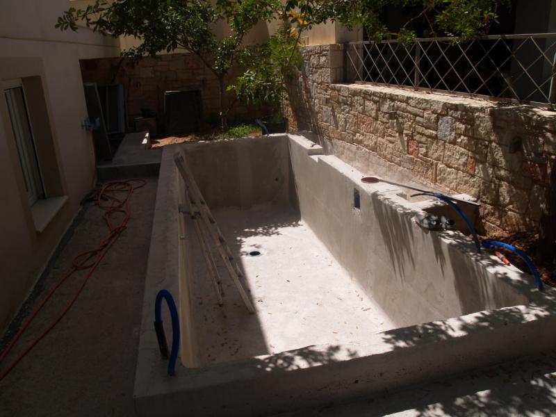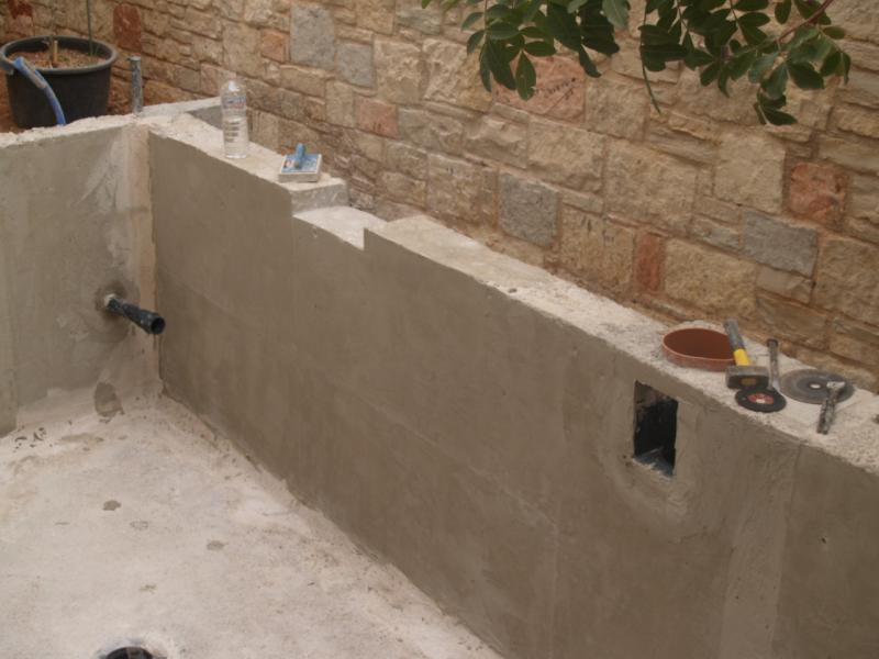 Έπεσαν και τα μπετα σήμερα το πρωί με ένα μικρό ατύχημα , έσπασε λίγο στην άκρη το bottom drain θα το κολλήσω μετά στην μόνωση,
