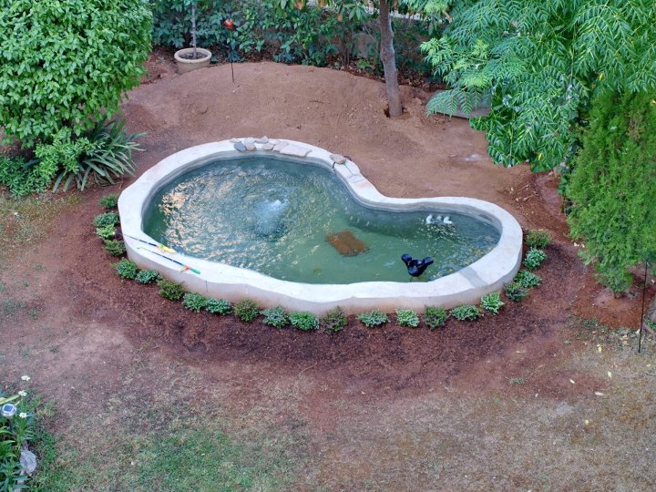 Μου έχει αρέσει ιδιαίτερα το σχήμα που της έχεις δώσει. Μια δυο ατέλειες μπορούν να καλυφθούν και αργότερα. Τελικά δεν έχεις εφαρμώσει κάποιο τρόπο επιφανειακού σκίμμερ? Πού έχεις βγάλει την έξοδο του σωλήνα προς το χώρο φίλτρανσης?