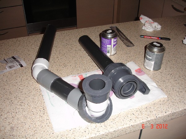 Πιάσαμε τα υδραυλικά τώρα. Έγιναν πρώτα οι απαραίτητες κολλήσεις και μέσα στην εβδομάδα θα ολοκληρώσουμε τα υδραυλικά της υπερχείλισης. Μετά από ιδέα που είδα..(και ζήλεψα), αποφάσισα να διαλέξω το ποτήρι υπερχείλισης και όχι κουτί. Λοιπόν κόλλες και σωλήνες, γωνίες κλπ στη σειρά και ξεκινάμε...