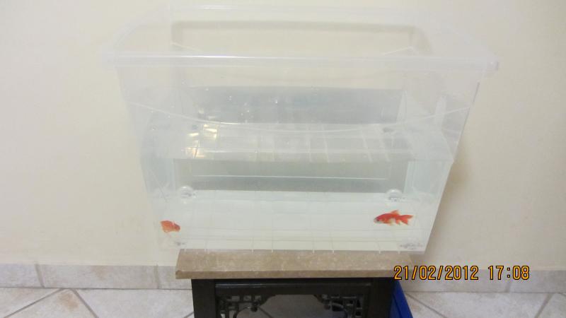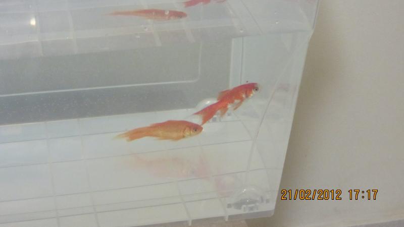 Ετσι...καλλίτερα προσωρινά στο μεγάλο κουτί με ένα φίλτρο και ίσως και μια αεραντλία που οξυγονώνει το νερό. Το καπάκι ίσως να πρέπει να είναι κλειστό με τρύπες γιατί έχουν τη συνήθεια να πηδάνε και μπορεί να βρεθούν απέξω.