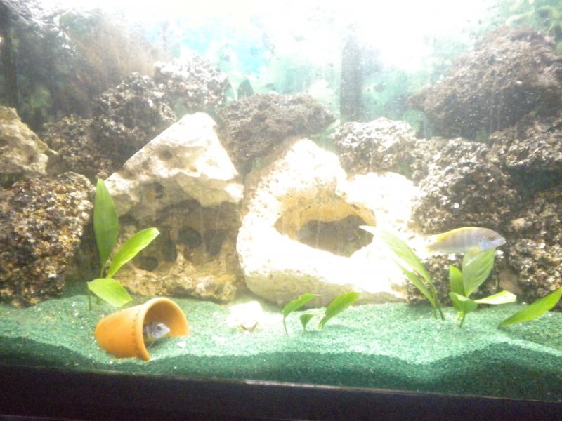 Είναι 4 Cynotilapia Afra Jalo Reef 3 θηλυκά και ένας αρσενικός. Μαζί θα μπούν και οι καινούριες πέτρες λάβας 5 κιλά. Περιμένω τις γνώμες σας. ΥΓ.Το μόνο που με απασχολεί είναι οτι τα δύο θηλυκά μπήκαν πριν απο λίγο και το (παλιό) θηλυκό τα έχει πάρει στο κυνήγι, είναι φυσιολογικό να υποθέσω? |