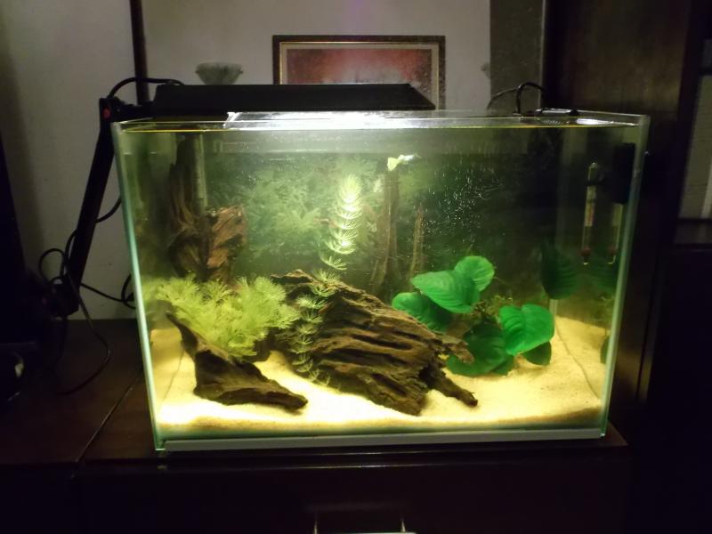 Τελειώνοντας, το ενυδρείο το ξαναέστισα με αληθινά φυτά γκάπι και γατόψαρα. και ιδού!!!