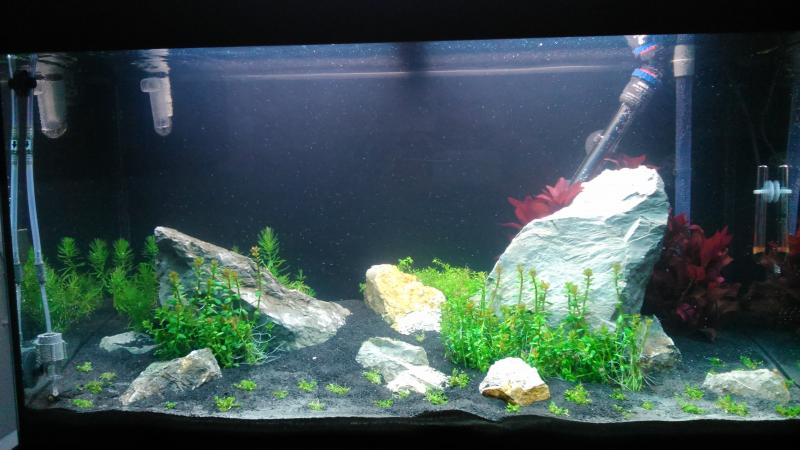 Μέχρι να γίνει ολοκληρωμένη παρουσίαση μια εικόνα του ενυδρείου όπως είναι. Το στήσιμο έγινε χθες το πρωί και το φύτεμα έγινε αργά το βράδυ.